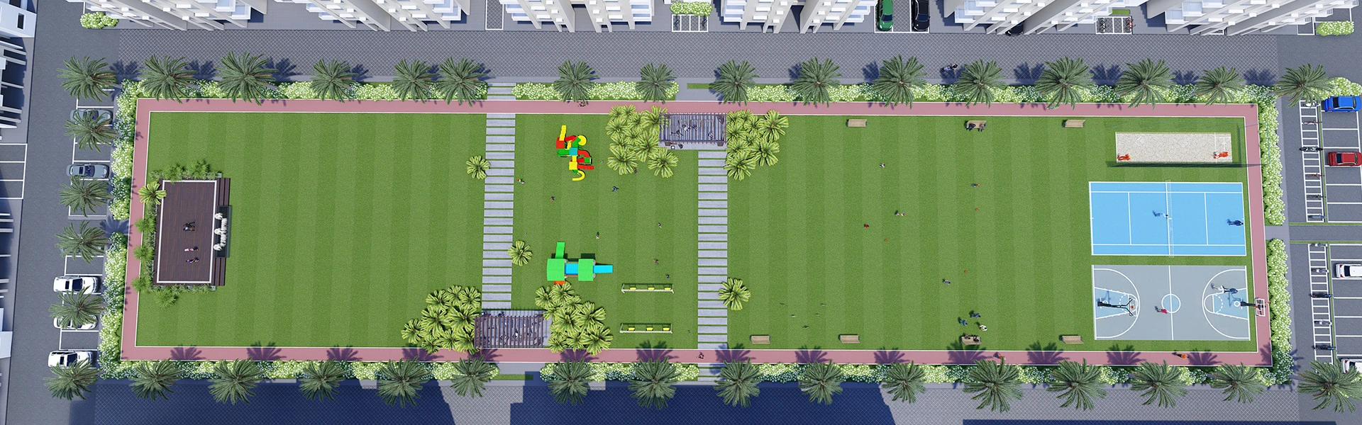 1.5-acre central park for relaxation and open green living.