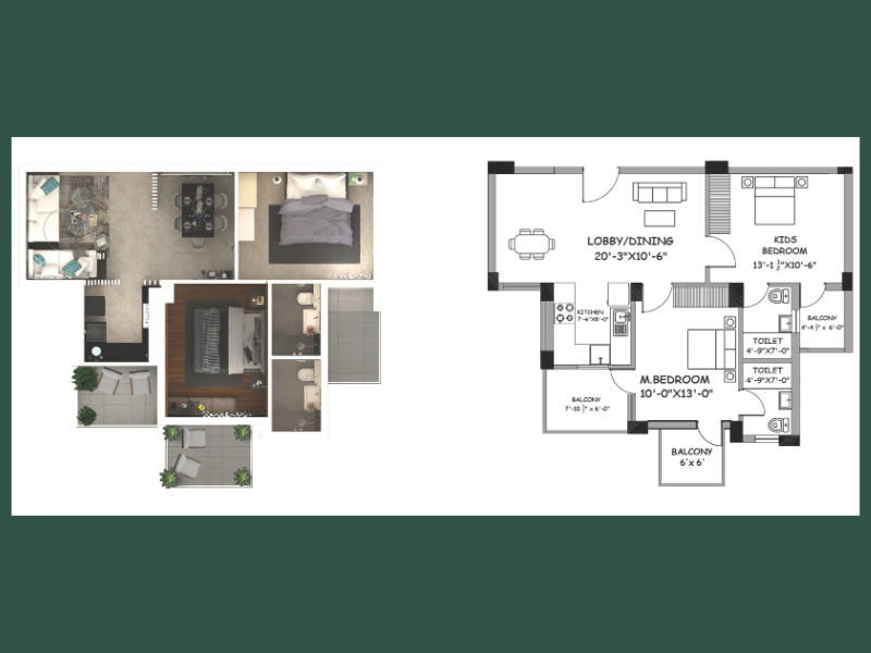 Efficiently designed 1 BHK apartment plans at The Eastern Park, giving you more room to live and thrive!